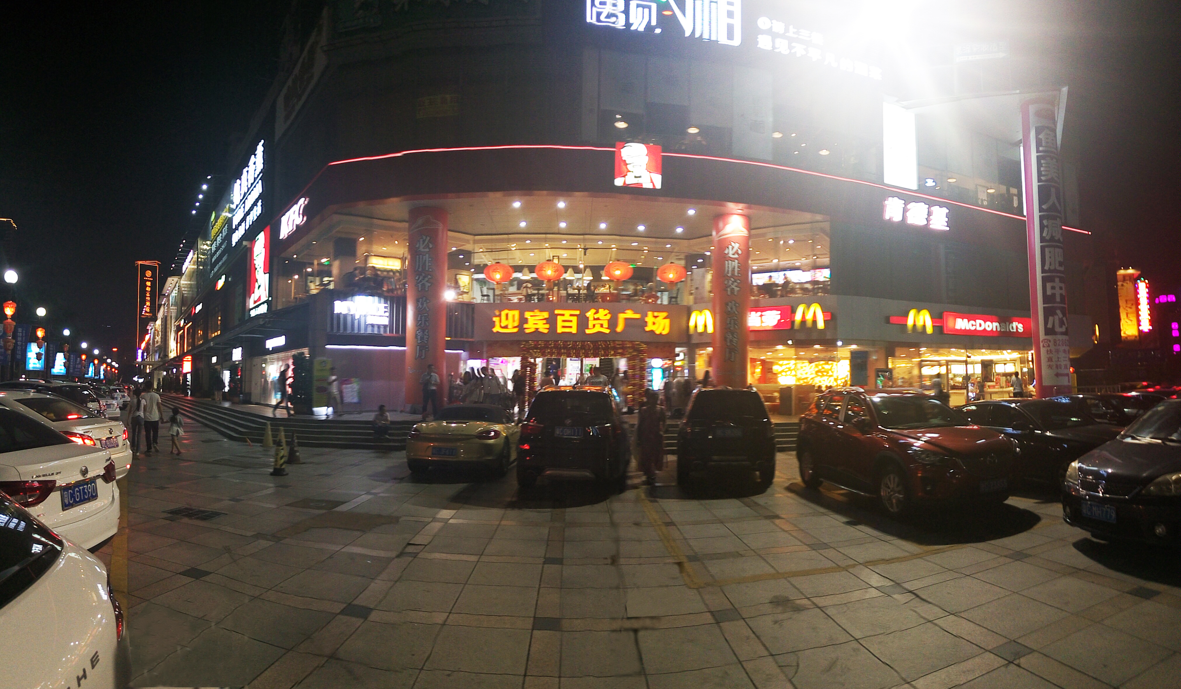迎(ying)賓(bin)商(shang)業(ye)廣(guang)場(chang)地(di)處(chu)珠(zhu)海(hai)最(zui)為(wei)繁(fan)華(hua)的(de)商(shang)業(ye)街(jie)區(qu)之(zhi)一(yi)的(de)迎(ying)賓(bin)南(nan)路(lu)商(shang)業(ye)區(qu)中(zhong)心(xin),橫(heng)跨(kua)粵(yue)華(hua)路(lu),毗(pi)鄰(lin)澳(ao)門(men)關(guan)口(kou),地(di)處(chu)蓮(lian)花(hua)路(lu)拱(gong)北(bei)核(he)心(xin)商(shang)圈(quan)之(zhi)首(shou),附(fu)近(jin)道(dao)路(lu)兩(liang)旁(pang)星(xing)級(ji)酒(jiu)店(dian)與(yu)商(shang)業(ye)大(da)廈(sha)林(lin)立(li),與(yu)萬(wan)佳(jia)百(bai)貨(huo)等(deng)大(da)型(xing)商(shang)業(ye)設(she)施(shi)形(xing)成(cheng)了(le)頗(po)具(ju)規(gui)模(mo)的(de)購(gou)物(wu)中(zhong)心(xin)商(shang)業(ye)消(xiao)費(fei)圈(quan),迎(ying)賓(bin)百(bai)貨(huo)廣(guang)場(chang)購(gou)物(wu)環(huan)境(jing)充(chong)滿(man)時(shi)代(dai)感(gan),入(ru)夜(ye)時(shi)這(zhe)裏(li)流(liu)光(guang)溢(yi)彩(cai),遊(you)人(ren)如(ru)織(zhi),具(ju)有(you)得(de)天(tian)獨(du)厚(hou)的(de)優(you)越(yue)地(di)理(li)位(wei)置(zhi);shangyeguangchangqianjiaotongsitongbada,shangyepeitaosheshiwanshan,huanjingzhuangxiuhaohuaqipai,youbabufushoudiantihedaxingzhongyangkongtiao,jiketigongchongzucheweidedixiatingchechang,gengzengjialeqikeliudejujili。