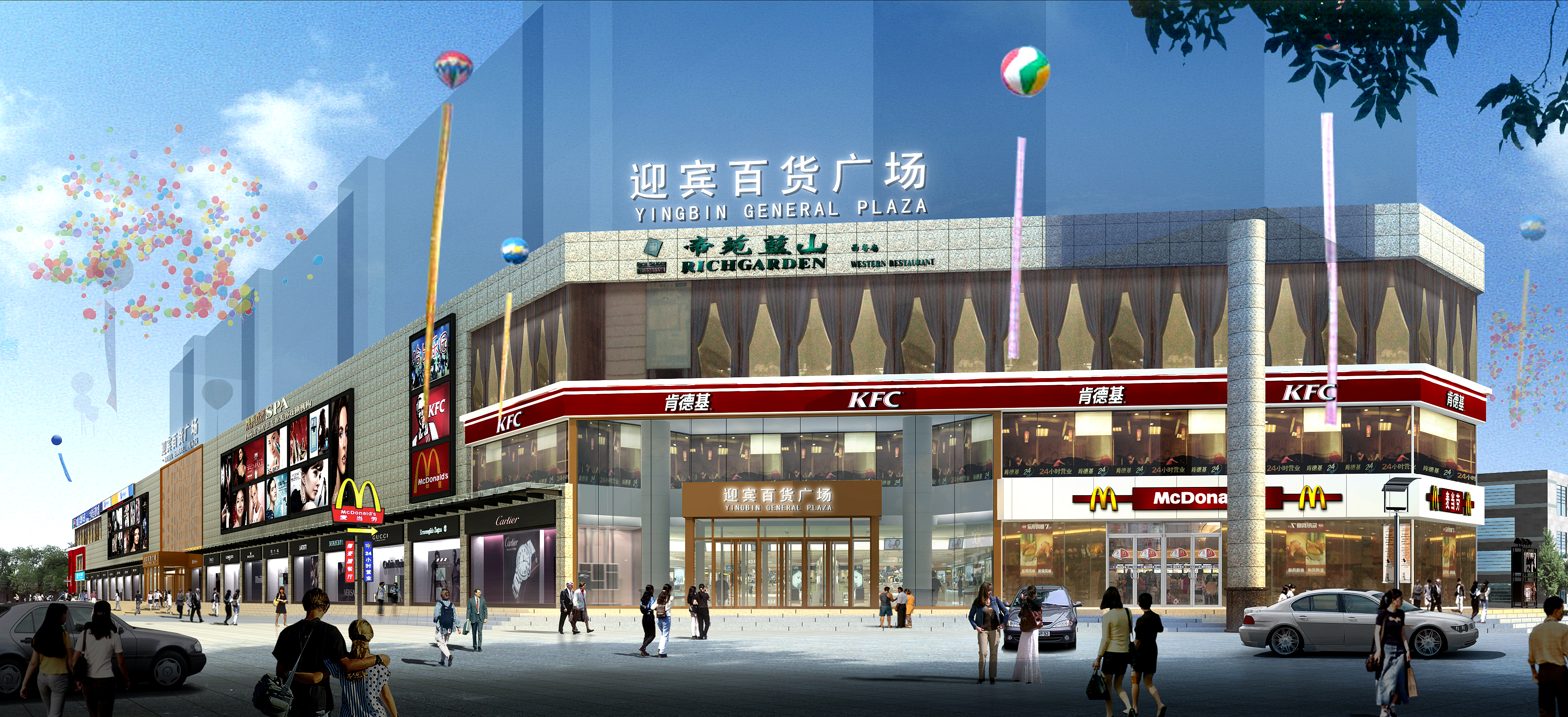 迎賓商業廣場不僅國際、國內知名品牌薈萃,更采用張揚個性的經典裝修及人性化商品陳列,盡顯品質上的雍容華貴和風格上的標新立異。完全時尚、個性、差異化特色的經營商業定位,品牌商品讓您流連忘返!